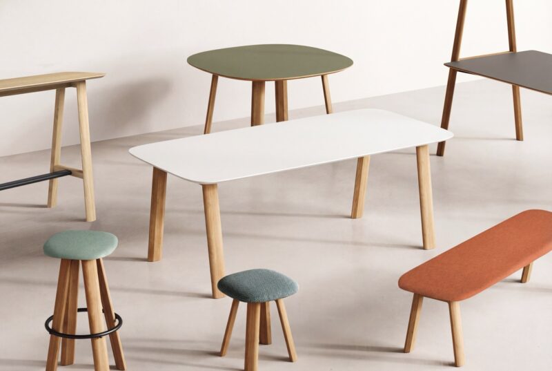 The range also includes matching seating options – a stool, bar stool and bench – each available with or without an upholstered seat pad in a fabric of your choice. Whether it’s for informal meetings, breakout zones or shared spaces, Nalma offers a straightforward solution with a quiet, functional design.