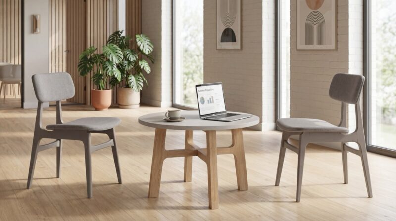 The Verge table collection features handcrafted wooden tables made from beech timber, designed for durability in high-traffic commercial and contract environments. Perfect for office breakout spaces, Verge is available in various sizes and finishes to suit different needs and preferences.